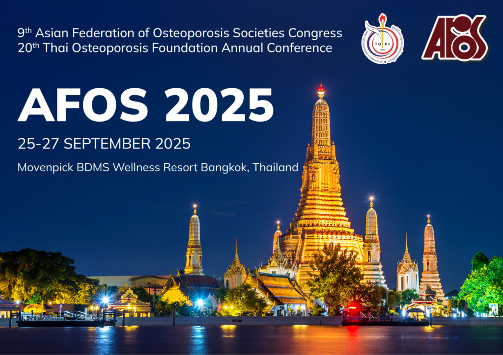 The 9th Asian Federation of Osteoporosis Societies Congress and the 20th Thai Osteoporosis Foundation Annual Conference, held on 25–27 September 2025 in Bangkok, concluded successfully with the strong collaboration of experts, healthcare professionals, and researchers across Asia. The joint meeting provided a valuable platform for sharing knowledge, advancing osteoporosis care, and strengthening regional cooperation.