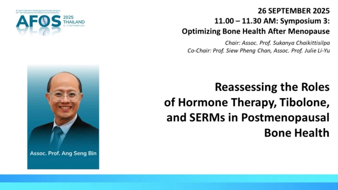 Symposium 3 –Reassessing the Roles of Hormone Therapy, Tibolone, and SERMs in Postmenopausal Bone Health – Assoc. Prof. Ang Seng BinSeptember 26, 2025